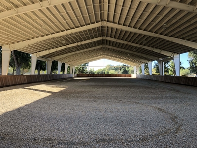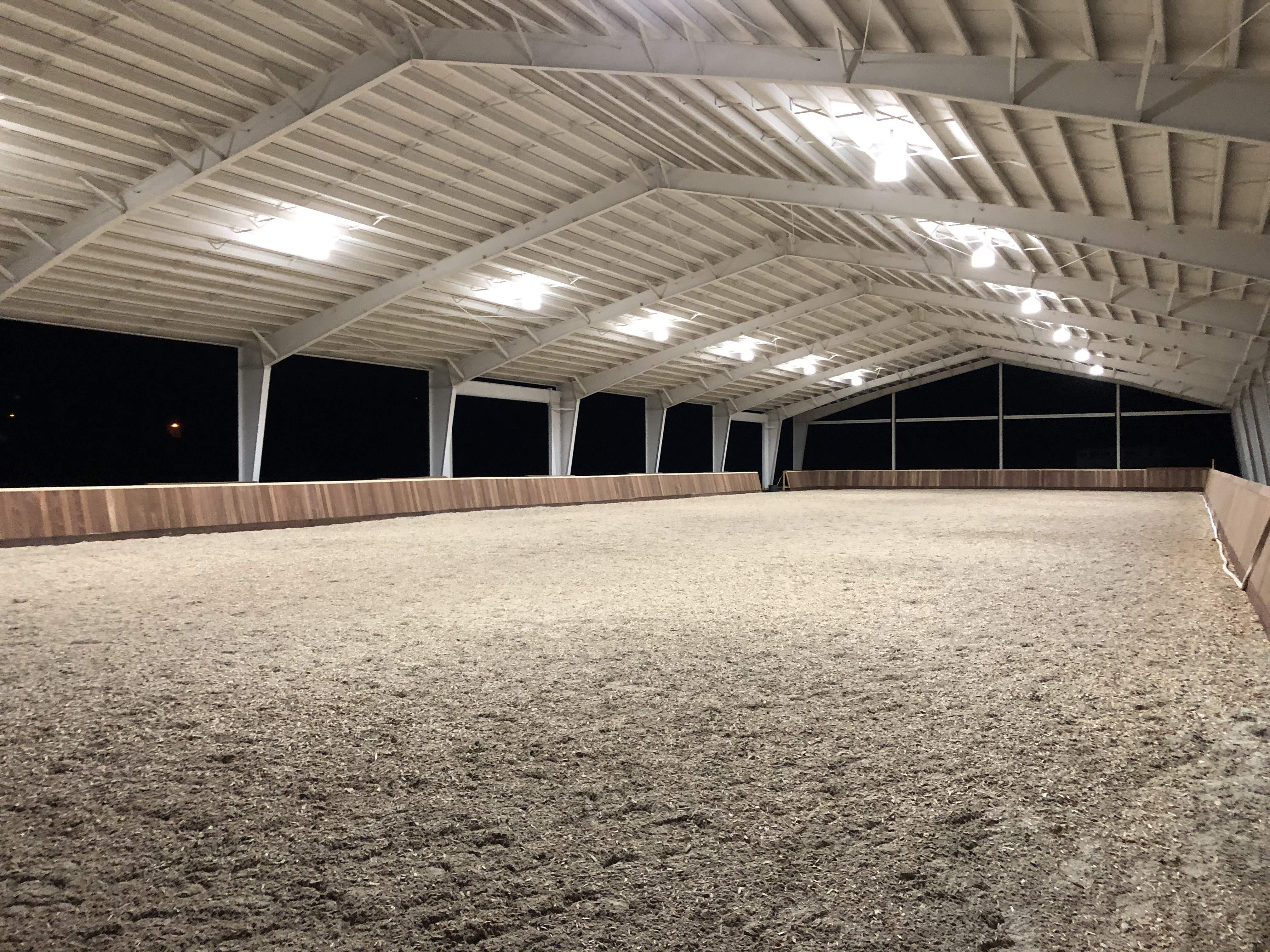 Hinnemann Farm CA is excited to announce the completion of the new full sized covered arena. Our own Stephan Hinnemann creating the gorgeous kick-boards! Come rain or shine or into the evenings we are able to offer consistent training from here on out.